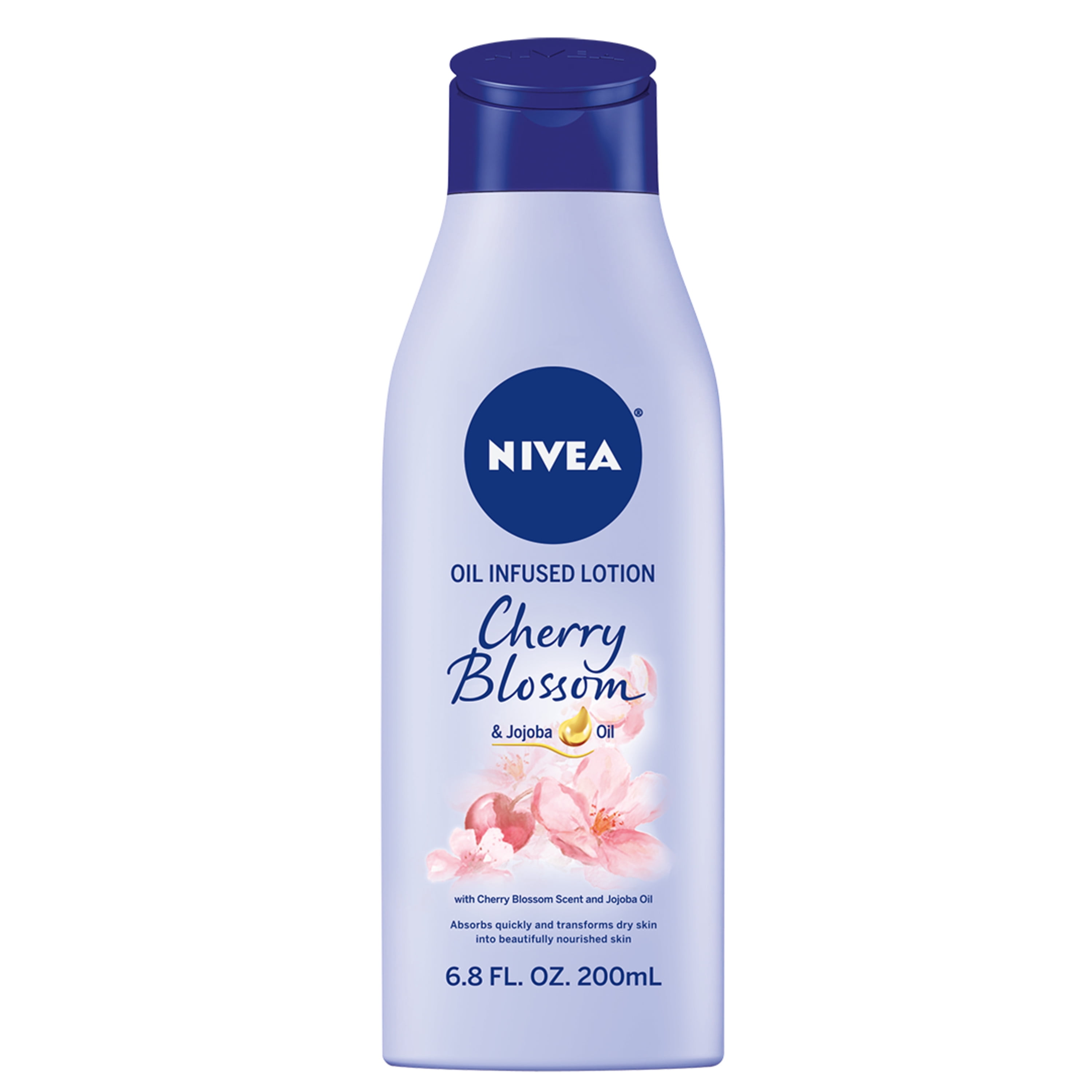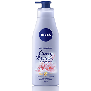 Oil in cream cherry blossom and jojoba oil I absolutely love this for my skin it smells great and it absorbs quick making it easy to use. Nivea in Oil Lotion Cherry Blossom and Jojoba Oil Body Lotion contains nurturing jojoba oil combined with gentle fast absorbing composition. Its extracts also a reliable remedy for discoloration-prone skin and also helps to brightens and evens.